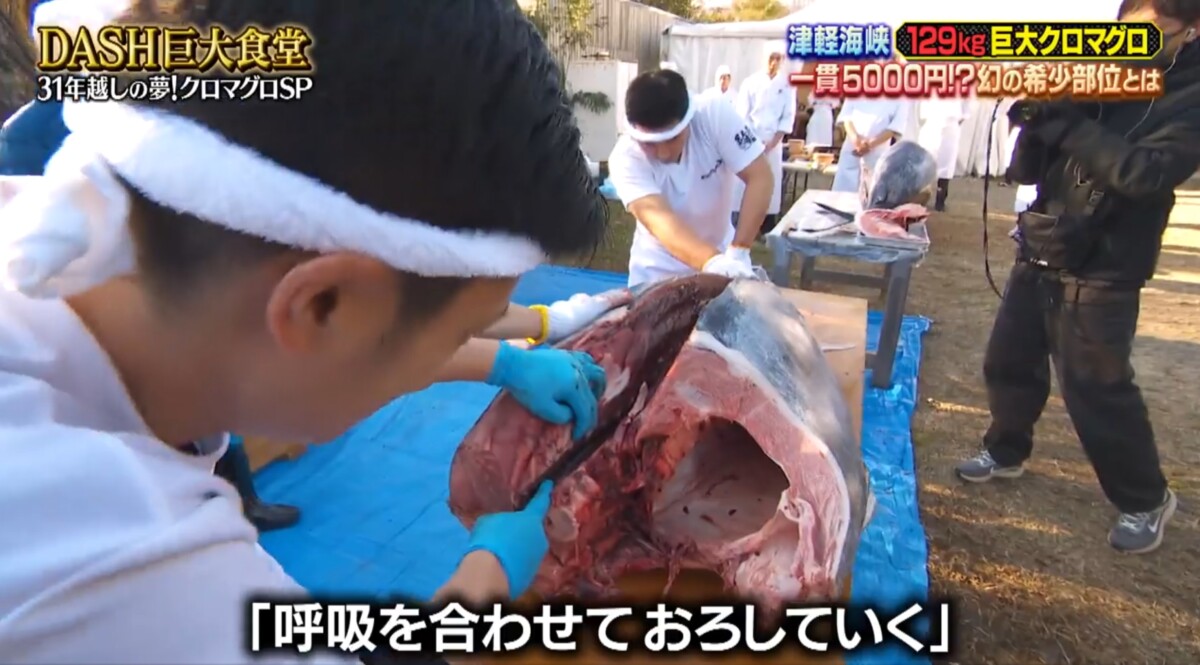 日テレ「ザ!鉄腕!DASH!!」本日放送19時~巨大マグロを解体! 鮪匠のツナキン、解体番長、マグ兄も参戦( `▽´)ノ>゜))彡 やらせ無しのぶっつけ本番!なにわ男子の藤原丈一郎君とマグ兄がまさかの・・解体中に様々なトラブル発生(;・∀・) なにわ男子の藤原丈一郎君とマグ兄の解体中のハプニング!皆さん分かりましたか(;・∀・)?鮨 銀座おのでら坂上統括料理長と鮪匠ツナキンの共演もあり!詳細はTverにてご覧あれ☆彡